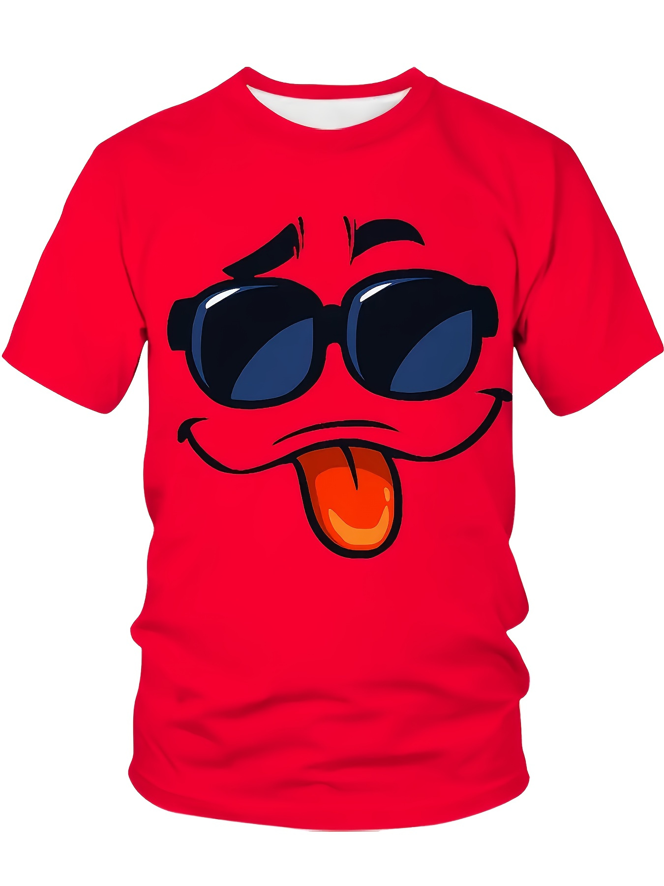 Men'S Big & Tall T-Shirt - Red Casual Everyday Shirt with Funny Face Graphic, Soft Polyester Blend Fabric - Machine Washable Plus Size Tee for Everyday & Party Wear - Non-Linen Texture Casual Top, Spring Autumn Apparel, Playful Graphic Shirt, Comfortable Fit Shirt, PLUS SIZE