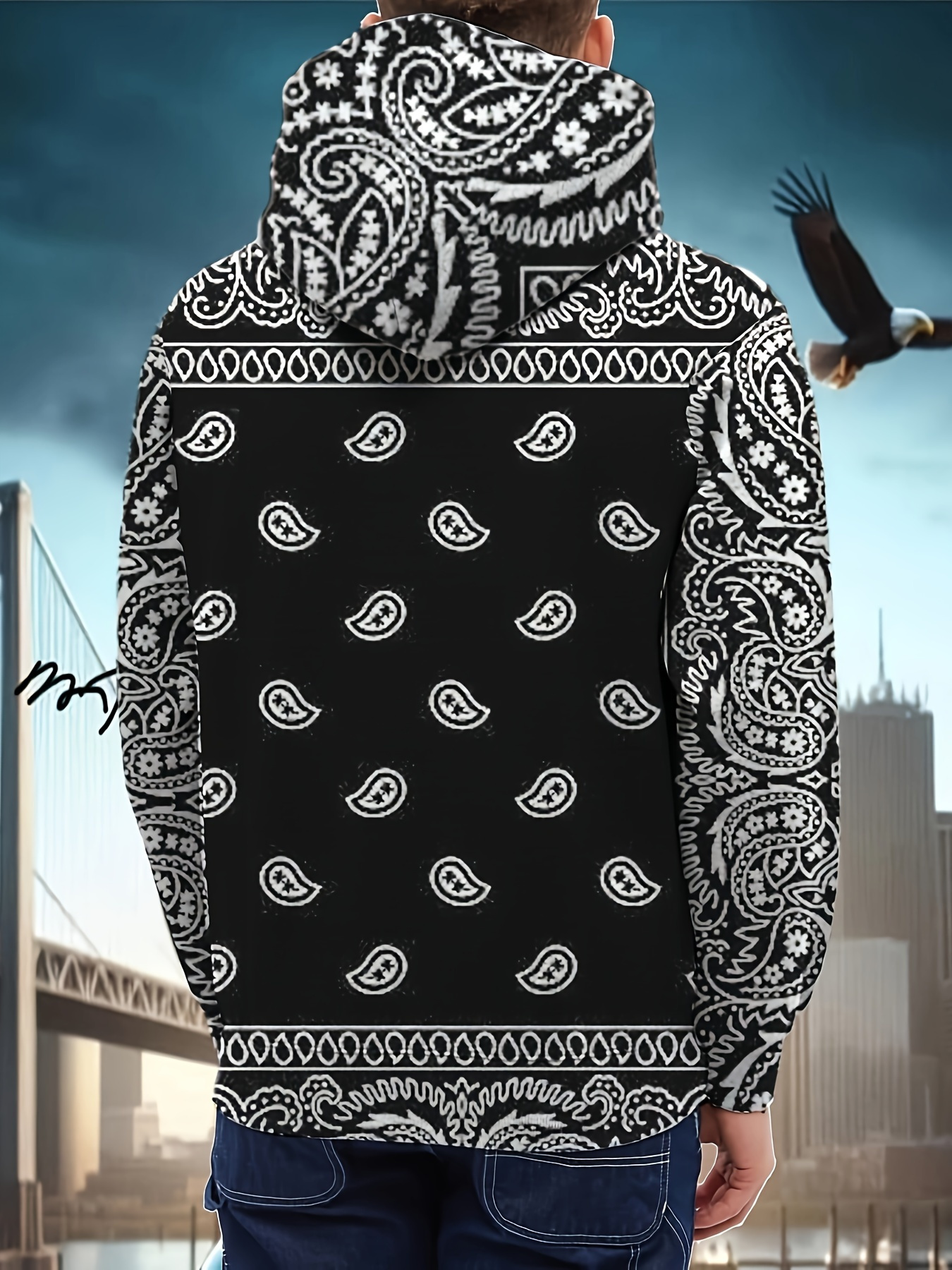 Men's Plus Size Hoodie - Soft Stretch Fabric Pullover Sweatshirt with Drawstring Hood & Front Pocket, Black with White-eye design - Regular Fit Long Sleeve Urban streetwear for Big & Tall Men - Machine Washable Everyday & Party Outfits, PLUS SIZE