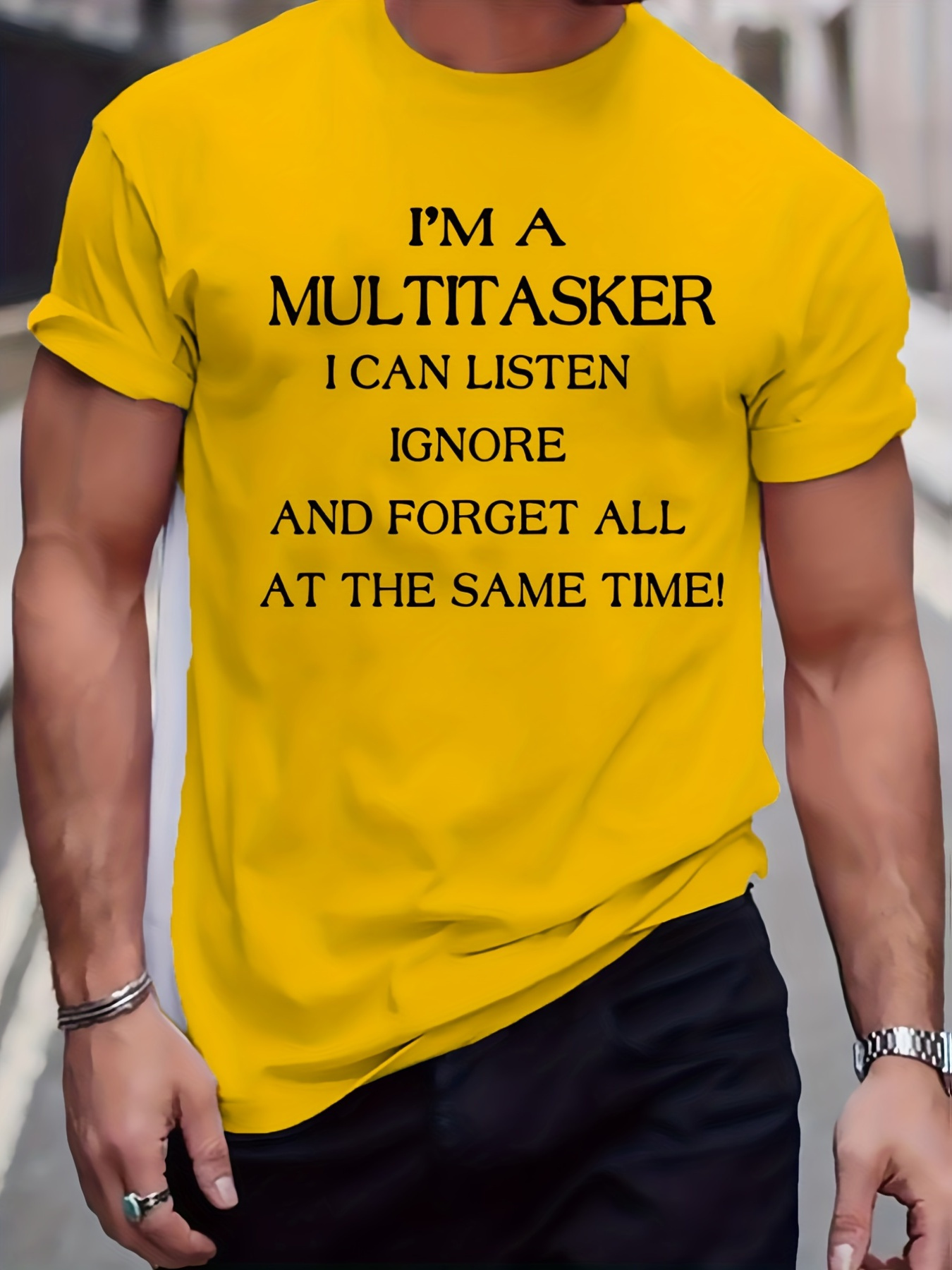 Men'S Plus Size Beige T-Shirt - "I'm a Multitasker" Humorous Print, Casual Mid-Stretch Round Neck, Short Sleeve, Perfect for Summer, Youth Casual Top | Humorous Print T-Shirt | Opaque Material, Plus Size