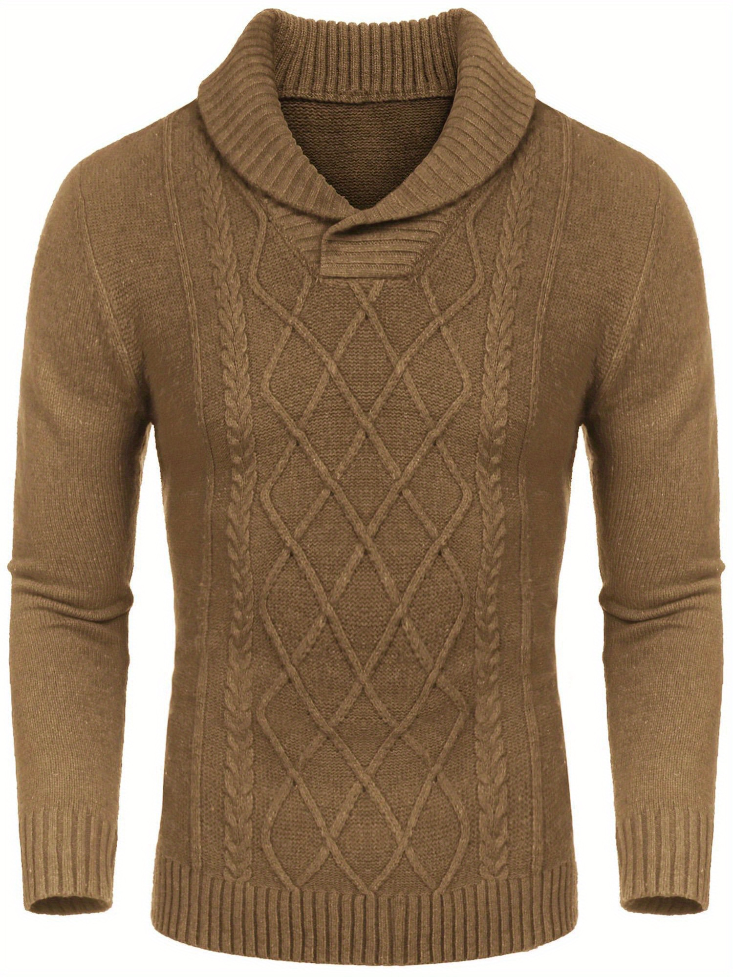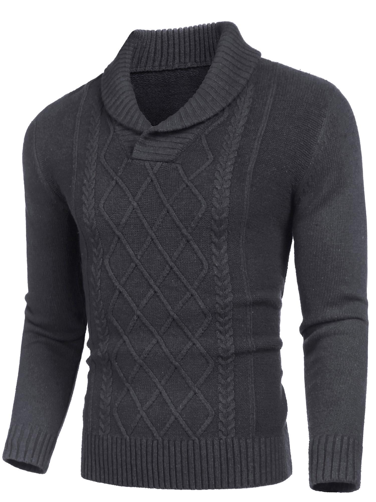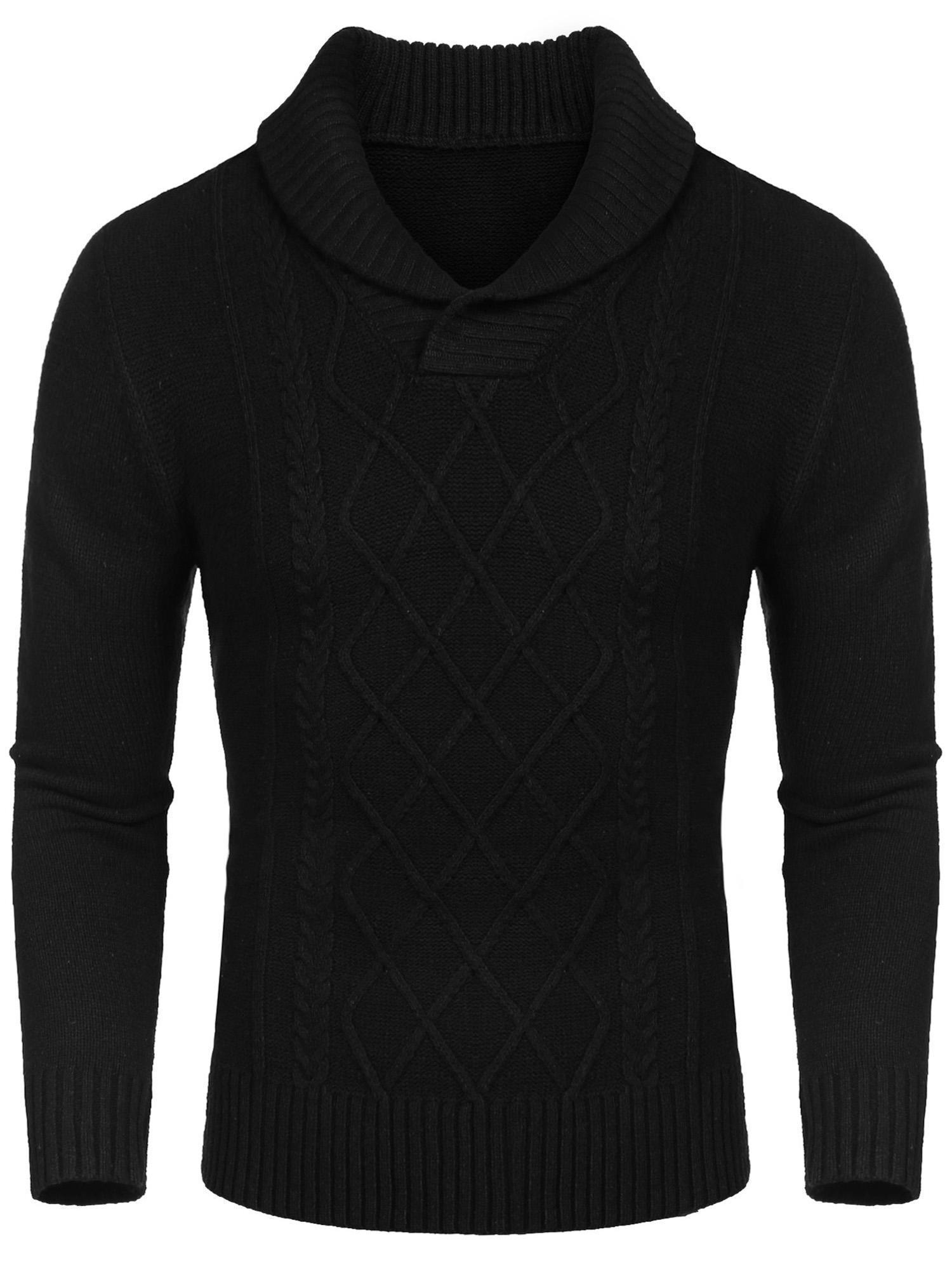 Men'S Shawl Collar Sweaters V-Neck Relaxed Fit Cable Pullovers, Plus Size